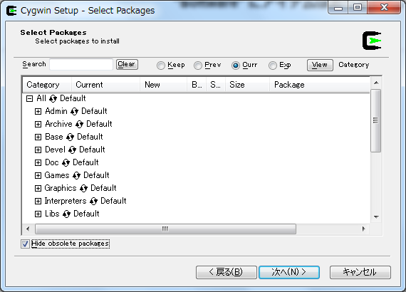 cygwinはデフォルトではg++とかmakeがインストールされないので追加する必要がある。