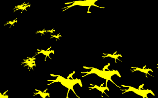 [エドワード・マイブリッジ](http://upload.wikimedia.org/wikipedia/commons/7/73/The_Horse_in_Motion.jpg)の「Horse in motion」をInkscapeでトレースし、各馬をセル化したものをthree.jsのshapeに変換し表示しています。