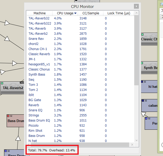 負荷の高いリバーブをばんばんかけているのでちょっと気になりCPU負荷を計測するとやっぱり高かった。